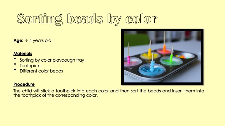 In order to understand our world, we are constantly classifying, categorizing and SORTING. Children can learn this skill through fun mathematic activities starting with concepts they already master such as colors, size, and shape. Sorting always involves using concrete materials so it is easy to make do with what you have at hand!